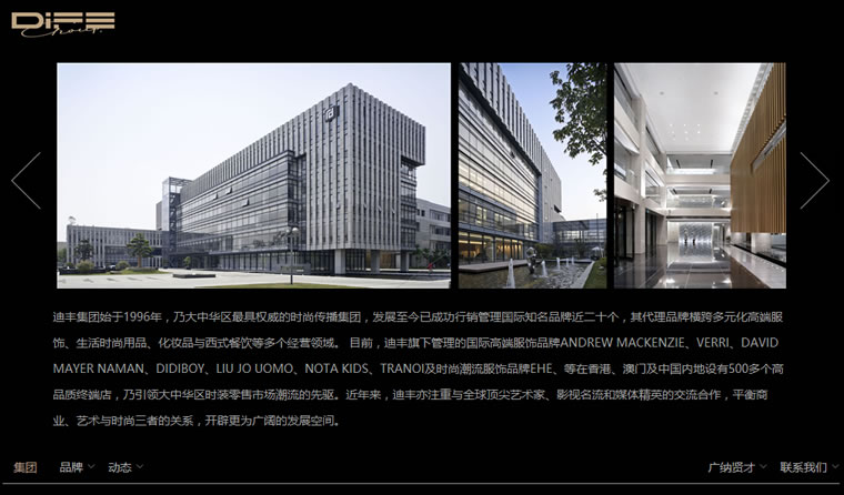 客戶企業(yè)背景: 迪豐集團是大中華區(qū)更具權(quán)威的時尚傳播集團,發(fā)展至今已成功行銷管理國際知名品牌近二十個,其代理品牌橫跨多元化高端服飾、生活時尚用品、化妝品與西式餐飲等多個經(jīng)營領域。 客戶網(wǎng)址:https://www.dife.cn/